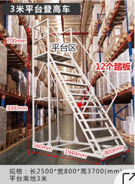 亞升倉庫登高梯庫房商超理貨取貨帶輪可移動(dòng)工業(yè)平臺(tái)梯子登高車取貨凳